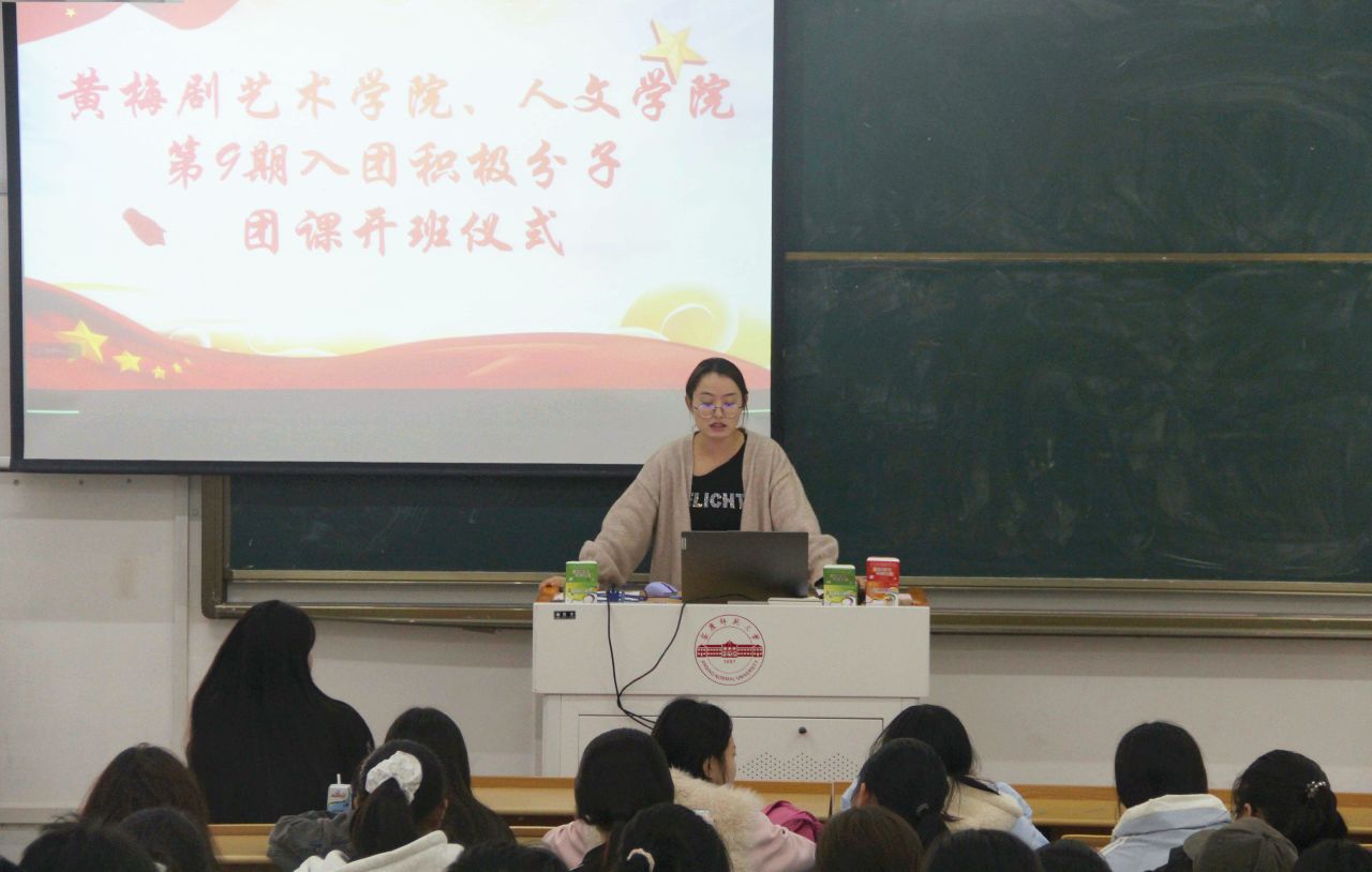 10月31日,人文学院团委与黄梅剧艺术学院团委联合举办第九期团校培训开班仪式。两个学院150余名入团积极分子参加开班仪式,人文学院团委负责人洪星星与黄梅剧艺术学院团委副书记胡晨参加本次活动。