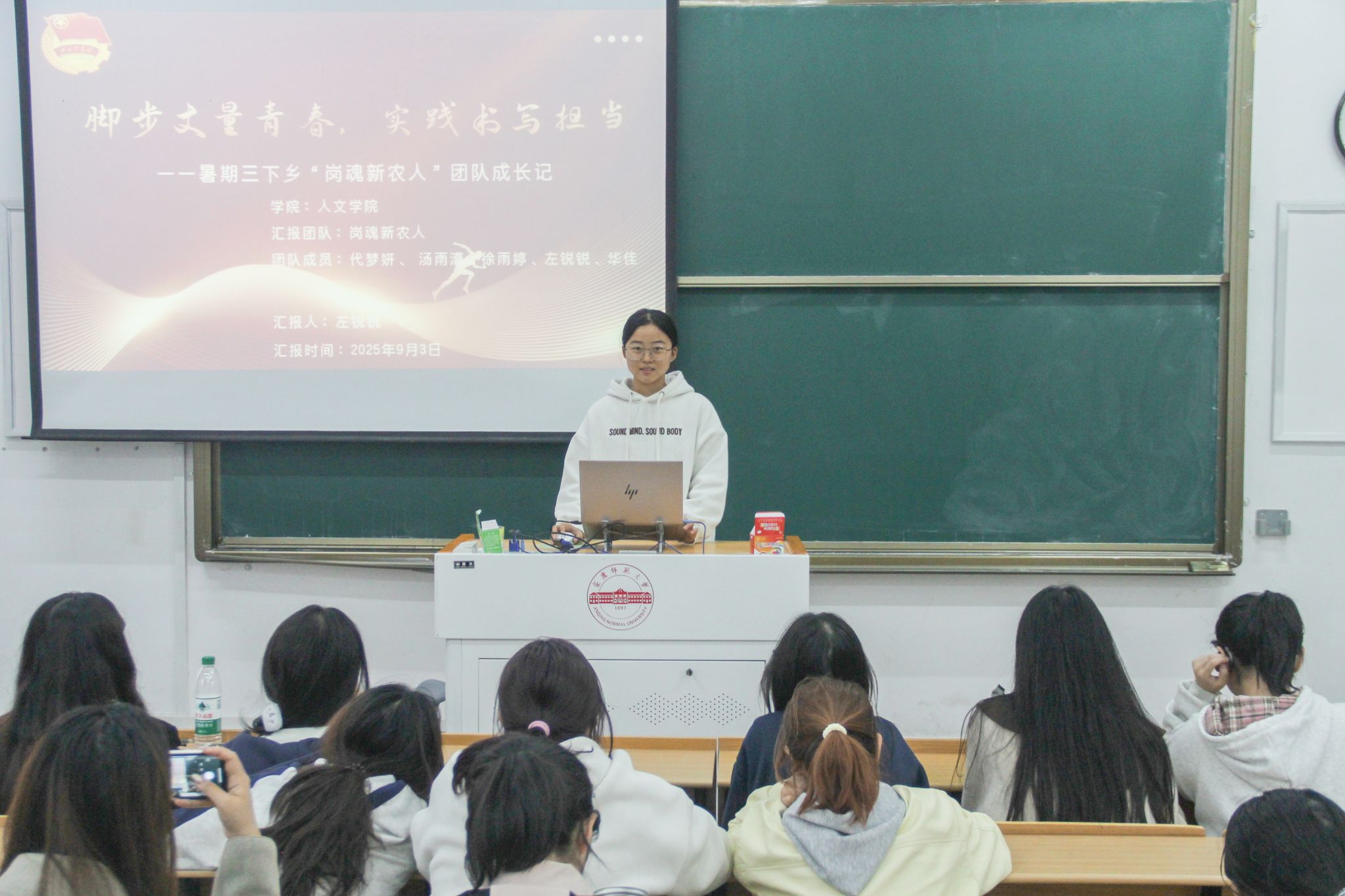 此次交流分享会,既是学院暑期“三下乡”社会实践活动的成果展示,又是青年学子互学互鉴的成长平台。学子们用脚步丈量祖国大地,用爱心服务基层,生动诠释了当代青年的责任与担当。未来,人文学院将持续搭建实践平台,鼓励更多学子把专业知识转化为服务社会的能力,让青春担当在服务人民、奉献社会中绽放出绚丽光芒。(撰稿:何宇涵 罗妍 摄影:袁沁悦 审核:方蓬)
