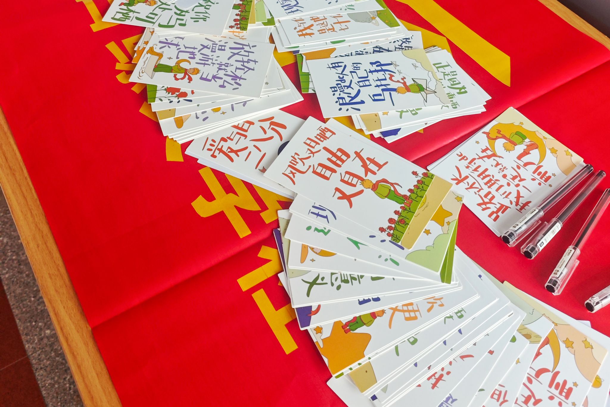 活动当日,两个校区的活动现场化身充满温情的“诗歌温暖站”。同学们或围坐成圈,畅聊创作思路、碰撞灵感火花;或手持画笔,在石膏娃娃上勾勒斑斓色彩,将暖心创意融入指尖手作;或俯身案前,在精美明信片上写下短诗寄语。“你的书包里,装着山风与期待”,一句句饱含深情的诗句,以真挚的情感与灵动的笔触打动了在场所有人。2025 级中国语言文学类专业(4)班的梁程程坦言:“用自己擅长的文字为留守儿童送去温暖,不仅提升了创作能力,更真切感受到公益的重量。” 她还特意在明信片中附上《小王子》的阅读推荐,希望山区小朋友能在书籍中收获陪伴与成长。