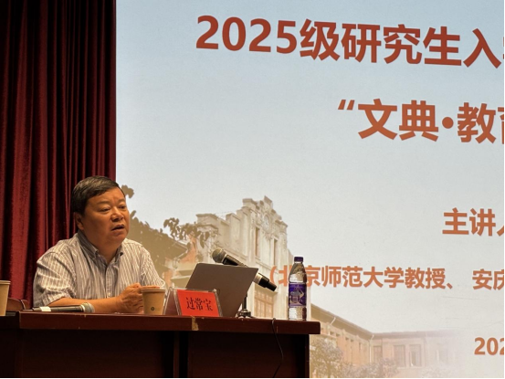 9月28日,人文学院在菱湖校区报告厅举办2025级研究生入学教育专家报告会暨“文典•教育名家讲坛”研究生导师培训。会议邀请北京师范大学教授、博士生导师过常宝担任主讲,人文学院硕士研究生导师和2025级研究生新生参加报告会。人文学院副院长沈志富主持报告会。