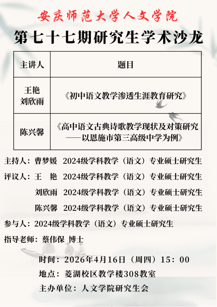 下一篇:人文学院举办第七十六期研究生学术沙龙
