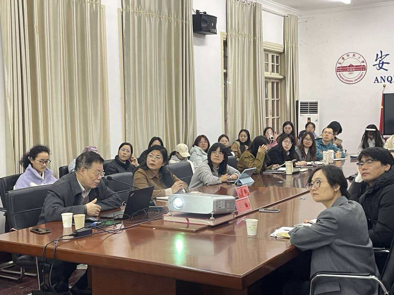 11月17日下午,国内著名语言学家,北京语言大学语言科学院教授、博士生导师吴福祥教授应邀做客敬敷人文讲坛,作题为“汉语历史语法研究漫谈”的学术讲座。本场讲座由安庆师范大学文学院教授鲍红主持,安庆师范大学副教授、副院长张莹担任与谈人,人文学院部分教师以及研究生和本科生参与活动。