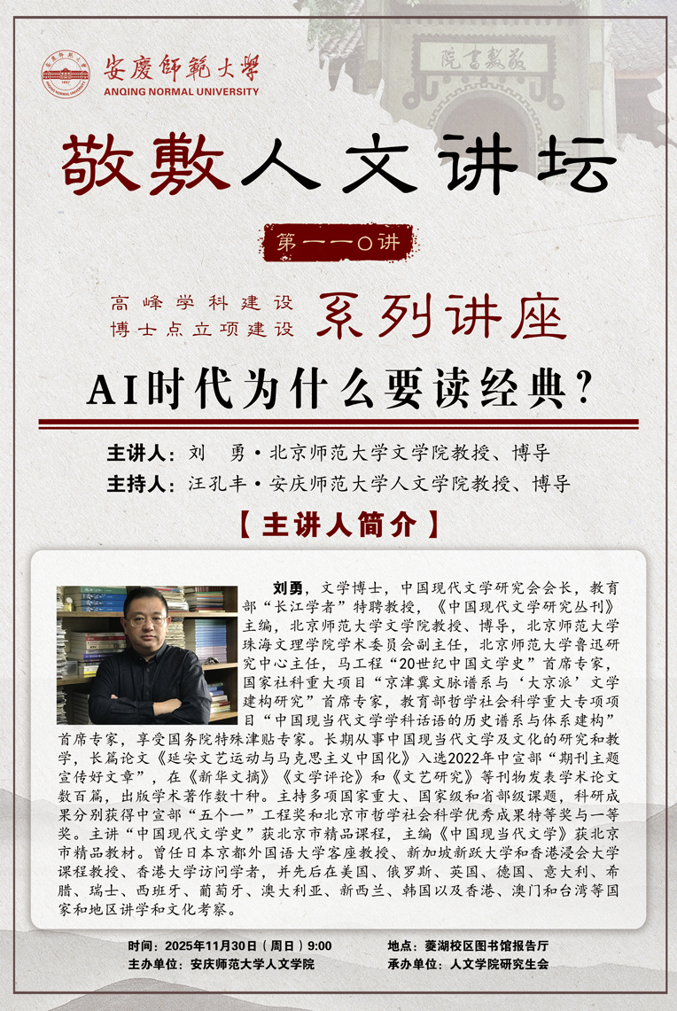 【敬敷人文讲坛(110)】AI时代为什么要读经典?