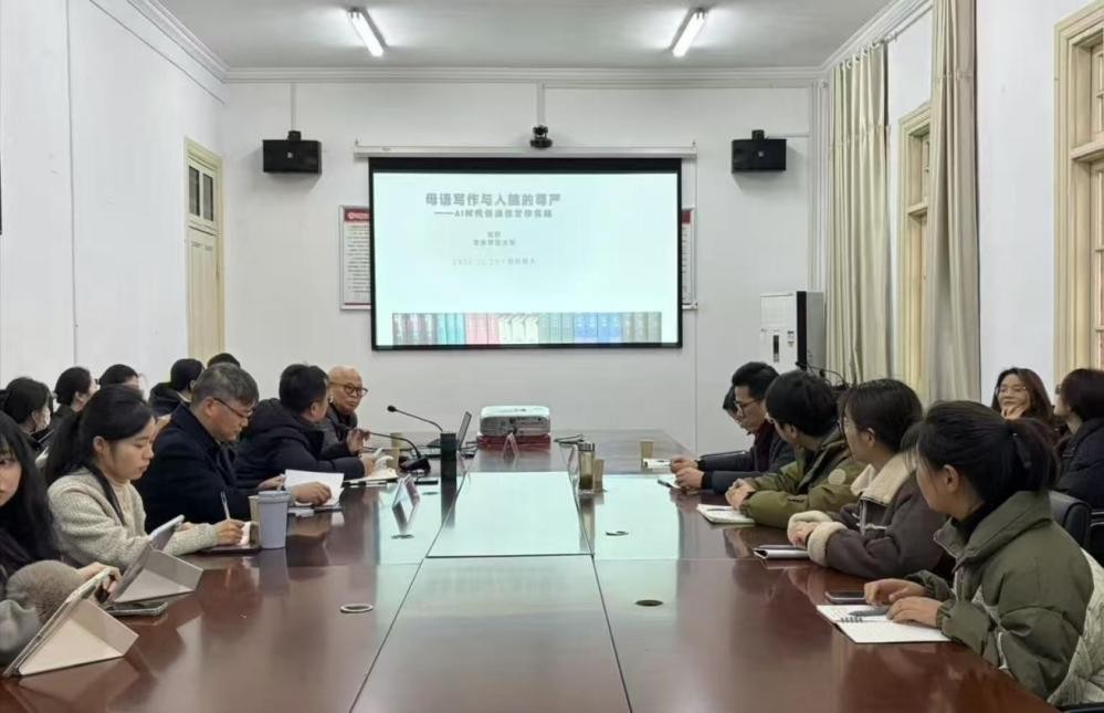 12月29日,北京师范大学博士生导师张柠教授应邀做客安庆师范大学“敬敷人文讲坛”,在菱湖校区红楼217会议室带来题为“母语写作与人脑的尊严——AI时代创造性写作实践”的学术讲座。本次讲座由人文学院陈宗俊教授主持,人文学院部分教师以及研究生近30人参加此次活动。