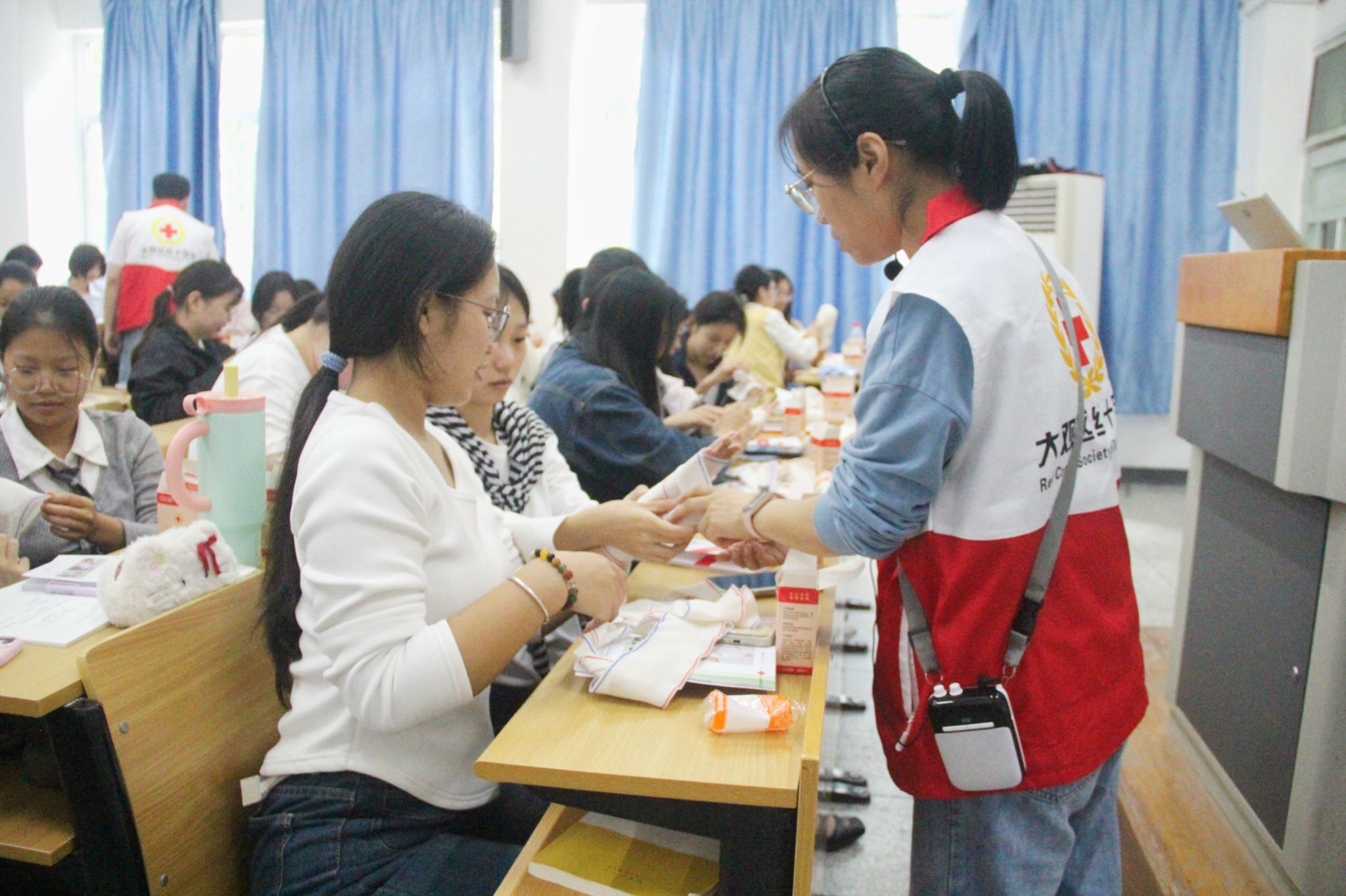 理论讲解结束后,参训学生在红十字会工作人员一对一指导下开展实操练习。大家以小组为单位,模拟不同急救场景,练习止血包、绷带及三角巾的使用方法,重点掌握手臂、头部等关键部位的伤口包扎技巧,在实践中强化急救技能。2024级汉语言文学专业(2)班学生洪盈表示,此次培训让她系统掌握了基础救护知识,“应急救护不只是专业领域的技能,更是每个人都应掌握的‘生命必修课’。”