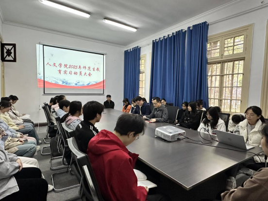 为确保师范生教育实习工作有序推进,10月24日上午,人文学院在红楼一楼138会议室召开2022级师范生教育实习动员大会。会议由人文学院副院长沈志富主持,党委书记王波出席,部分毕业班辅导员老师及2022级汉语言文学、汉语国际教育、历史学等专业学生代表参加。