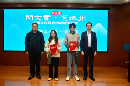 此前,该活动已顺利完成“阅文书”线上征稿、遴选与评审环节,共收到安徽大学、安徽师范大学、安庆师范大学、阜阳师范大学、黄山学院、安徽艺术学院、黄山职业技术学院等多所高校学子的140篇参赛文章、38个短视频及25个文创设计作品。经专家集中评审,人文学院学子表现突出,斩获多项荣誉。其中2025级中国语言文学硕士班王脆英摘得征文一等奖;2024级文典班席晴阳获征文二等奖;2024级文典班叶凡、2023级历史学二班赵恒威拿下征文三等奖,甘建琴等6名同学还分别在征文、文创设计赛道收获优秀奖。