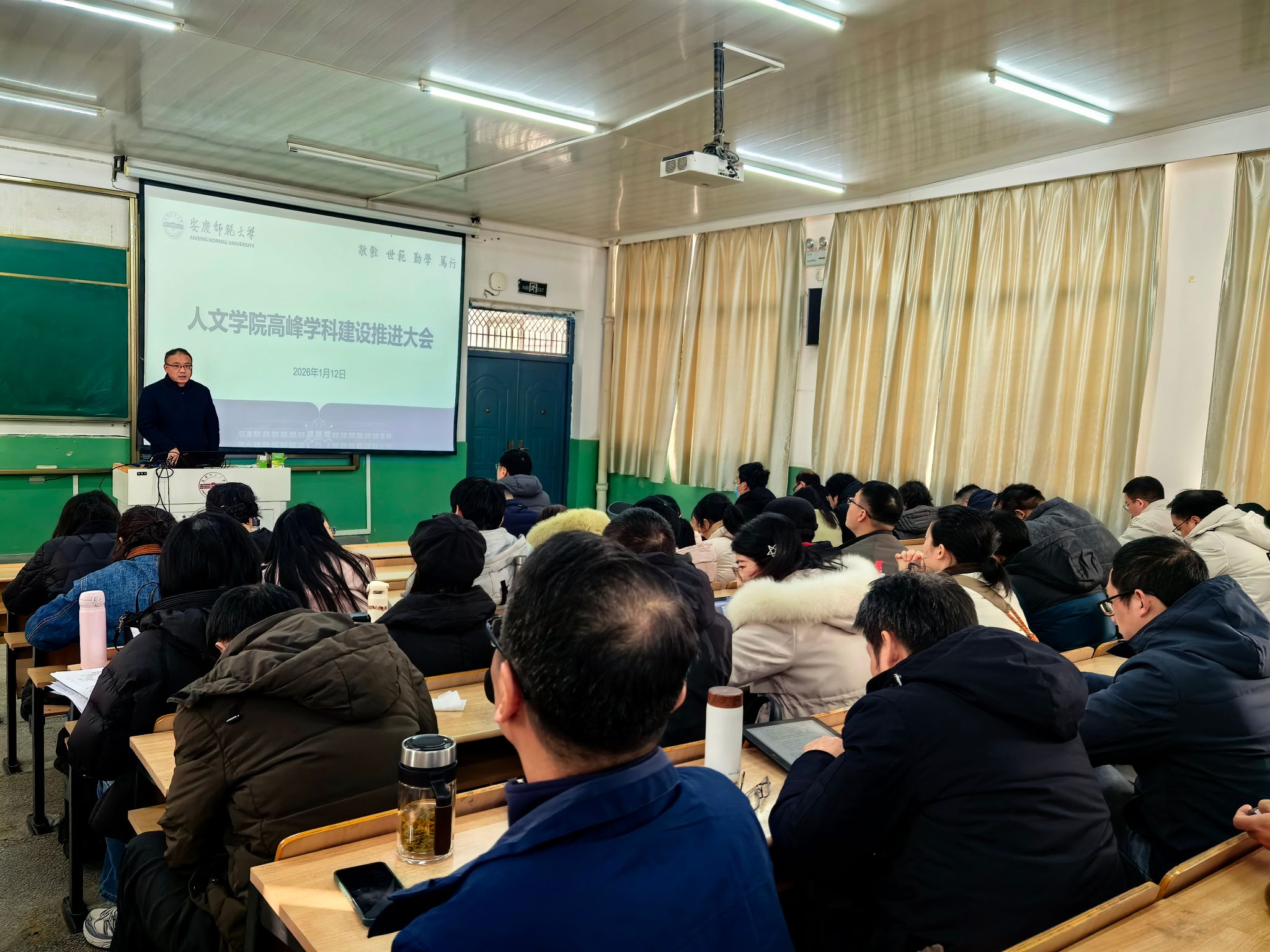 2026年1月12日,人文学院召开高峰学科建设推进大会,明确新一轮高峰学科建设路径,为学院高峰学科建设凝聚共识、明确方向。会议由学院院长汪孔丰主持。
