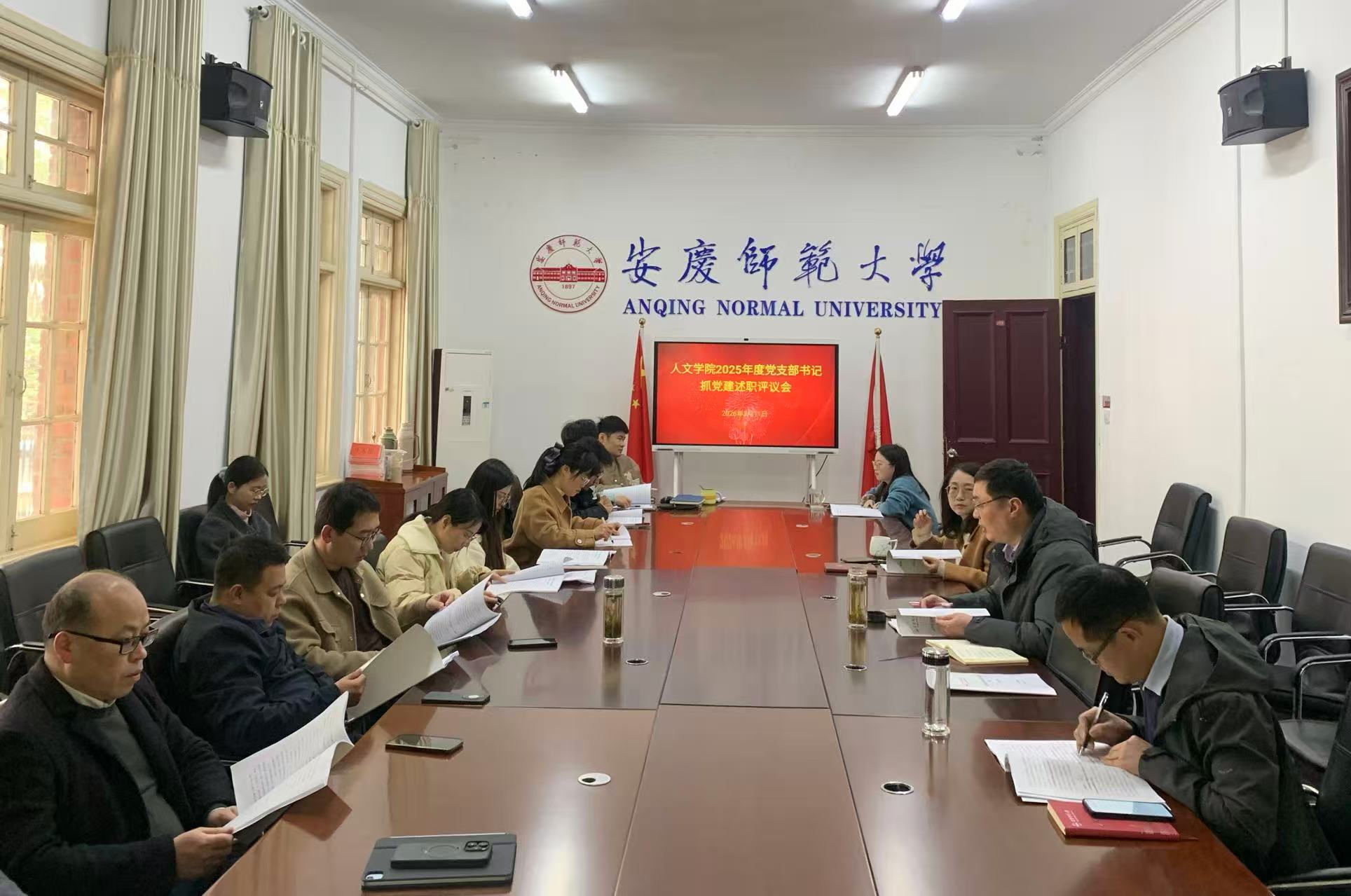 3月11日下午,人文学院党委在红楼会议室召开2025年度党支部书记抓党建工作述职评议会。学院领导班子出席会议,全体基层党支部书记参会述职,会议由党委书记王波主持,党委秘书、师生代表列席会议。